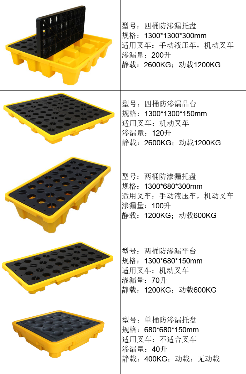 6. 儲(chǔ)存容器所放置的場所的空間大小,以便選擇兩桶或者四桶的防漏托盤;